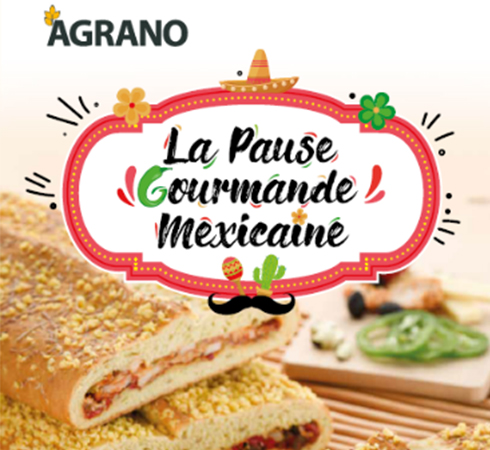 Pause mexicaine Agrano En septembre, Agrano présente une nouvelle recette snacking « La Pause Gourmande Mexicaine » mettant en avant la saveur incomparable de la farine élaborée Maïsano 50% ou Mexicain 100% ! Une recette de pain au maïs renfermant une garniture à la saveur mexicaine au poulet ou végétarienne à la fois facile et rapide à réaliser ; telle est la promesse de cette recette snacking dans l’air du temps !