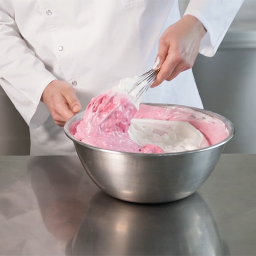 Dosage standard : 200 g de préparation pour Bavarois Alaska-express + 300 g d'eau à 25-30°C + 1000 g de Chantilly sucrée de 50 à 100 g par litre de chantilly.