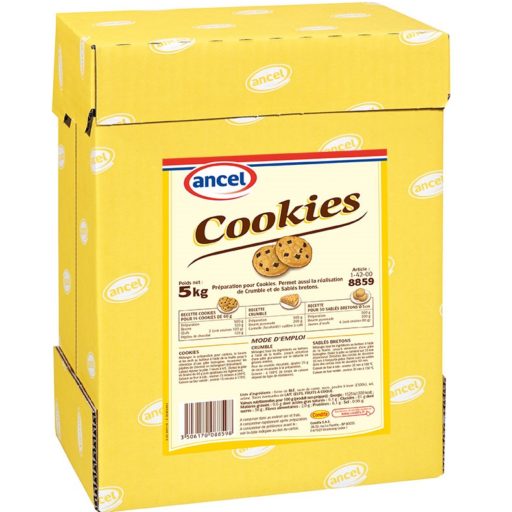 Rendement : 1 carton de 5 kg permet de réaliser 140 cookies de 60 g ou 6750 g de crumble ou 500 sablés bretons de 5 cm de diamètre.