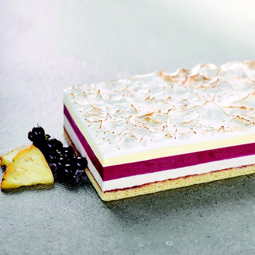 Recette de biscuit Joconde pour 4 plaques de 40 x 60 cm : 1000 g de préparation + 280 g de beurre fondu + 400 g de jaunes d'œufs + 600 g de blancs d'œufs.