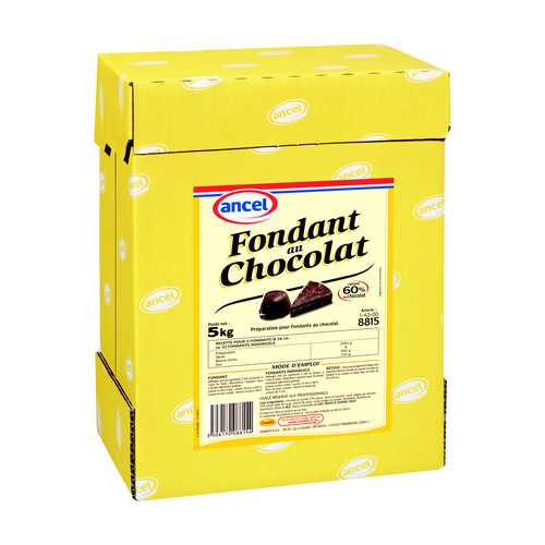 Rendement : 1 carton de 5 kg permet de réaliser 8 fondants de 26 cm de Ø ou 80 fondants individuels.
