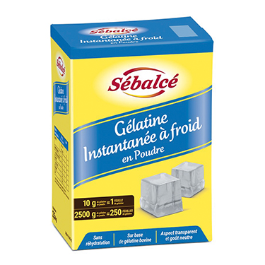La plupart des professionnels ont pris l’habitude d’utiliser cette gélatine bovine en poudre pour sa simplicité de mise en œuvre. L’utilisation de la gélatine bovine en poudre offre de nombreux avantages. Son pouvoir gélifiant fait un ingrédient indispensable dans la réalisation d’entremets et de desserts. Cette gélatine ne modifie ni le goût ni la couleur d’un produit fini. Son avantage principal est de pouvoir être dosée précisément. Même si elle ne se présente pas sous forme de feuilles, la gélatine en poudre Sébalcé d’origine animale offre une gélification ferme pour sublimer l’esthétisme de vos bavaroises, terrines ou mousses.