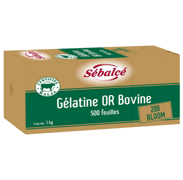 En ce qui concerne la gélatine en poudre, elle est 100% d’origine bovine et témoigne d’un pouvoir gélifiant de 200, 150 ou 100 Bloom.