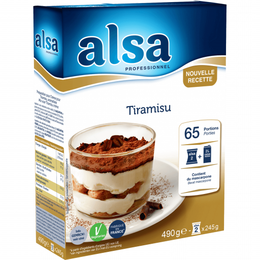 D’une part, c’est sa simplicité d’exécution qui invite de nombreux professionnels à utiliser la préparation pour tiramisu de la marque alsa Professionnel. Cette préparation est idéale en restauration collective car un seul pack permet de préparer 65 portions en un temps record mais également en restauration commerciale car l’étui contient deux sachets de 33 portions.