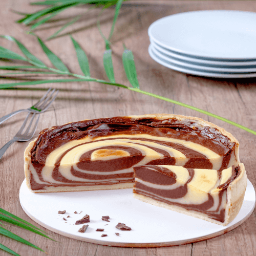 Déposer en alternance un peu de préparation non aromatisée et un peu de préparation cacaotée au centre des moules, afin de créer un effet zébré.