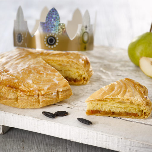 Sur des plaques recouvertes de papier cuisson, déposer les fonds de feuilletage et dorer les contours au pinceau. A l’aide d’une spatule, répartir le fourrage poire-fèves de tonka sur chaque fond, en partant du centre jusqu’à 2 cm du bord de la pâte. A la poche, répartir la frangipane sur le fourrage poire-fèves de Tonka. Placer les fèves. Recouvrir les galettes avec les fonds de feuilletage restants. Souder les bords, chiqueter puis dorer les galettes. A l’aide de la pointe d’un couteau, piquer les galettes à trois endroits puis dessiner une rosace en incisant très légèrement la pâte. Laisser reposer au frais environ ½ heure avant de cuire environ 30 min à 180°C en four ventilé ou 200°C en four à sole. A la sortie du four, badigeonner le dessus des galettes avec le sirop.