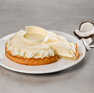 Au batteur, fouetter les jaunes d’œufs et la pâte aromatique de noix de coco à vitesse rapide pour les foisonner. Cuire l’eau et le sucre à 115°C puis verser doucement le sirop sur les jaunes tout en continuant de battre à grande vitesse jusqu’à ce que le mélange refroidisse. Hydrater la gélatine dans de l’eau froide puis la faire fondre quelques secondes au micro-ondes et l’incorporer au mélange, au fouet, à la main. Ajouter progressivement la crème fouettée. Couler en cercles à tarte de 3 X 20 cm puis lisser à ras. Surgeler puis retirer les cercles.