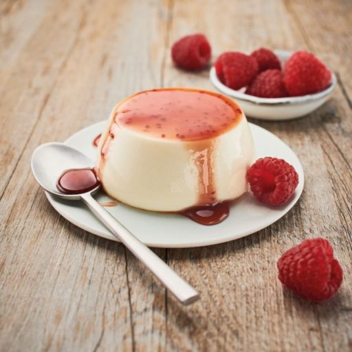Suggestion : on pourra démouler les Panna Cotta si besoin et les mettre sur assiettes avec un nappage de Sauce Dessert Framboise alsa Professionnel.