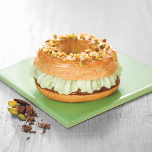 Réaliser la pâte à choux selon votre méthode habituelle. Prélever 600 g de pâte à choux puis dresser 12 anneaux de 8 cm de Ø sur une plaque recouverte de papier cuisson. Cuire à 180°C environ 20 min en four ventilé tirage ouvert ou à 200°C environ 30 min en four à sole tirage ouvert.