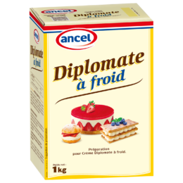 Verser l’eau froide dans la cuve du batteur, ajouter la pâte aromatique de noix de coco et la préparation pour crème diplomate à froid. À l’aide du fouet, mélanger 1 minute en première vitesse puis battre 4 minutes à grande vitesse. La crème doit être réalisée juste avant son utilisation.