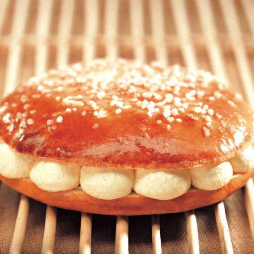 Couper les brioches puis les garnir de mousseline à l’aide d’une poche à douille.